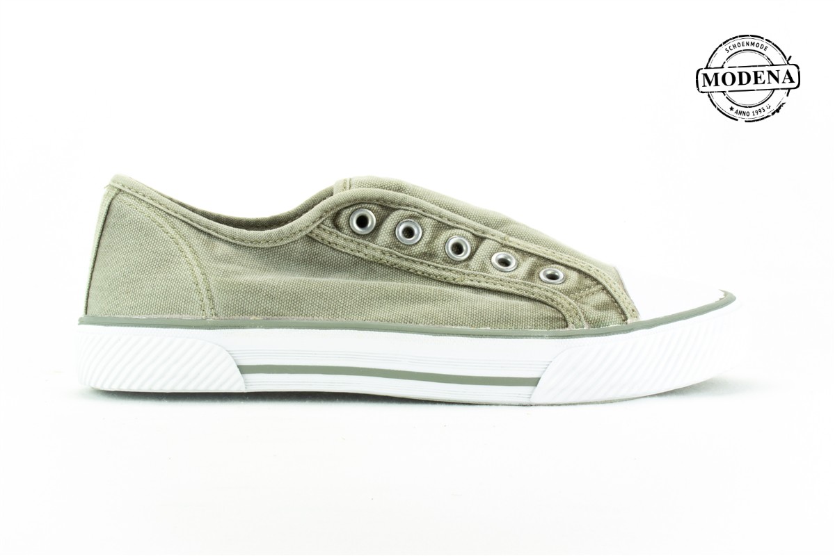 | Details | Een instap model zonder sluiting met enkel een elastiek, volledig in stof. Met een retro basket zool. |