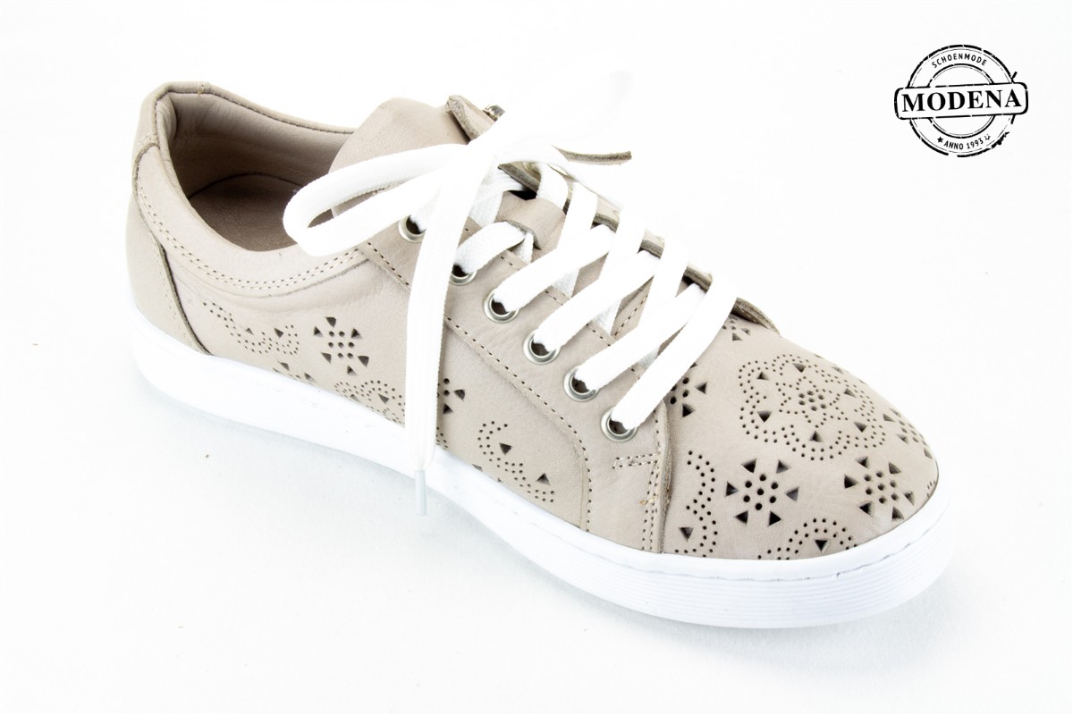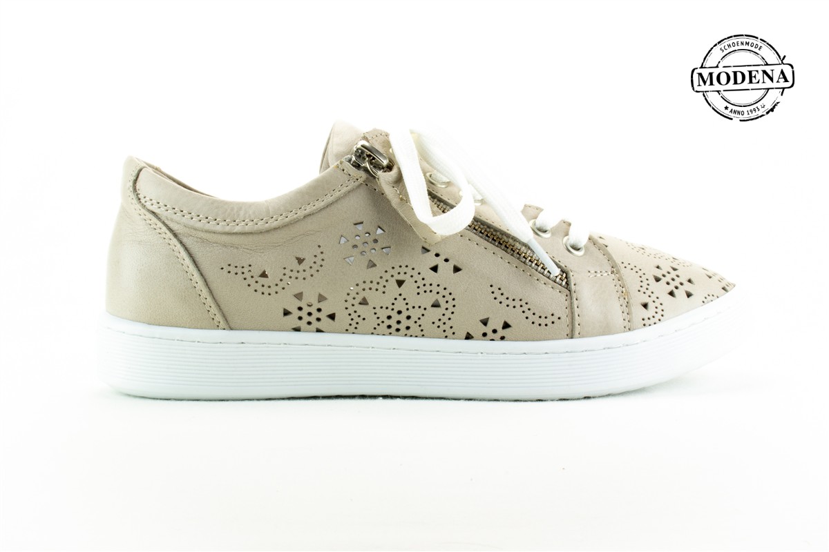 | Details | Een lage basket met een brede veter en een rits schuin langs de veters. zacht leder en zool, dus super loopcomfort. Deze heeft perforeetjes op de neus en de zijkanten, niet op de hiel, die is dus wel verstevigd. |