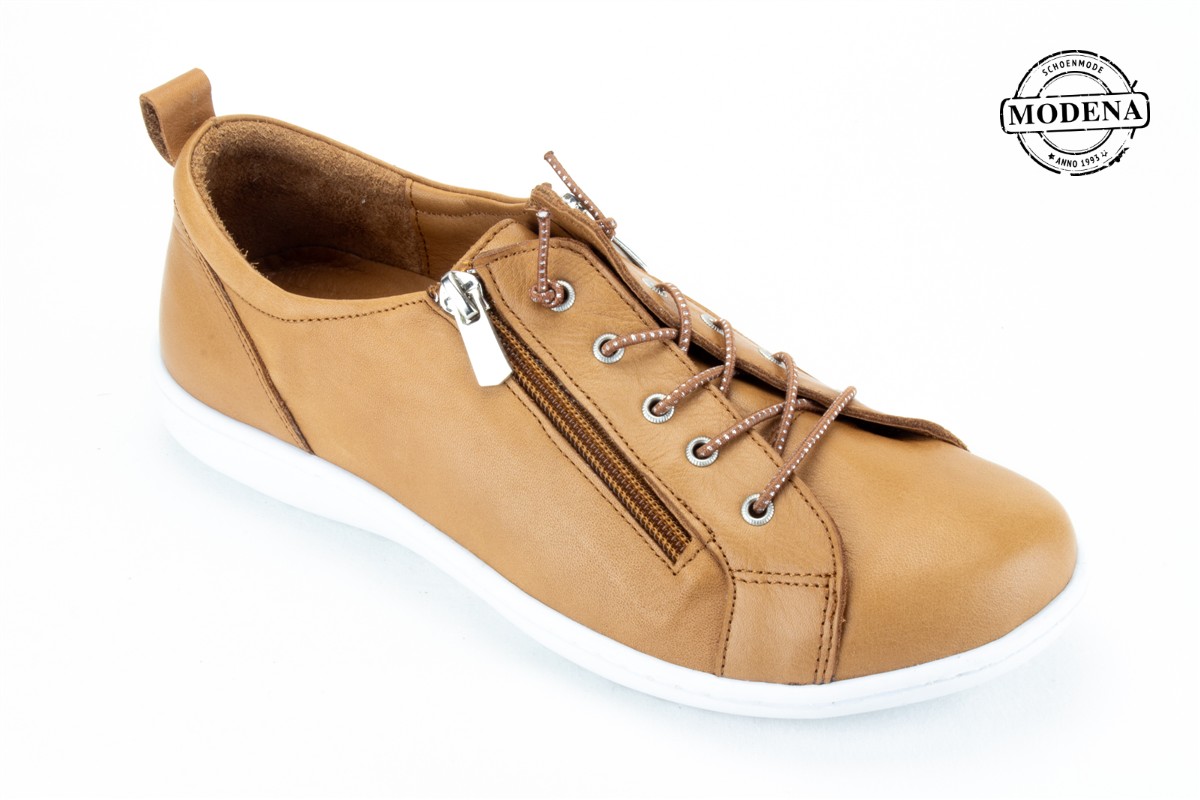 | Details | Een nieuw laag model met een mooie ronde neus. Met een elastische veter en 2 ritsen, in het gekende zachte leder met soepele zool. |
