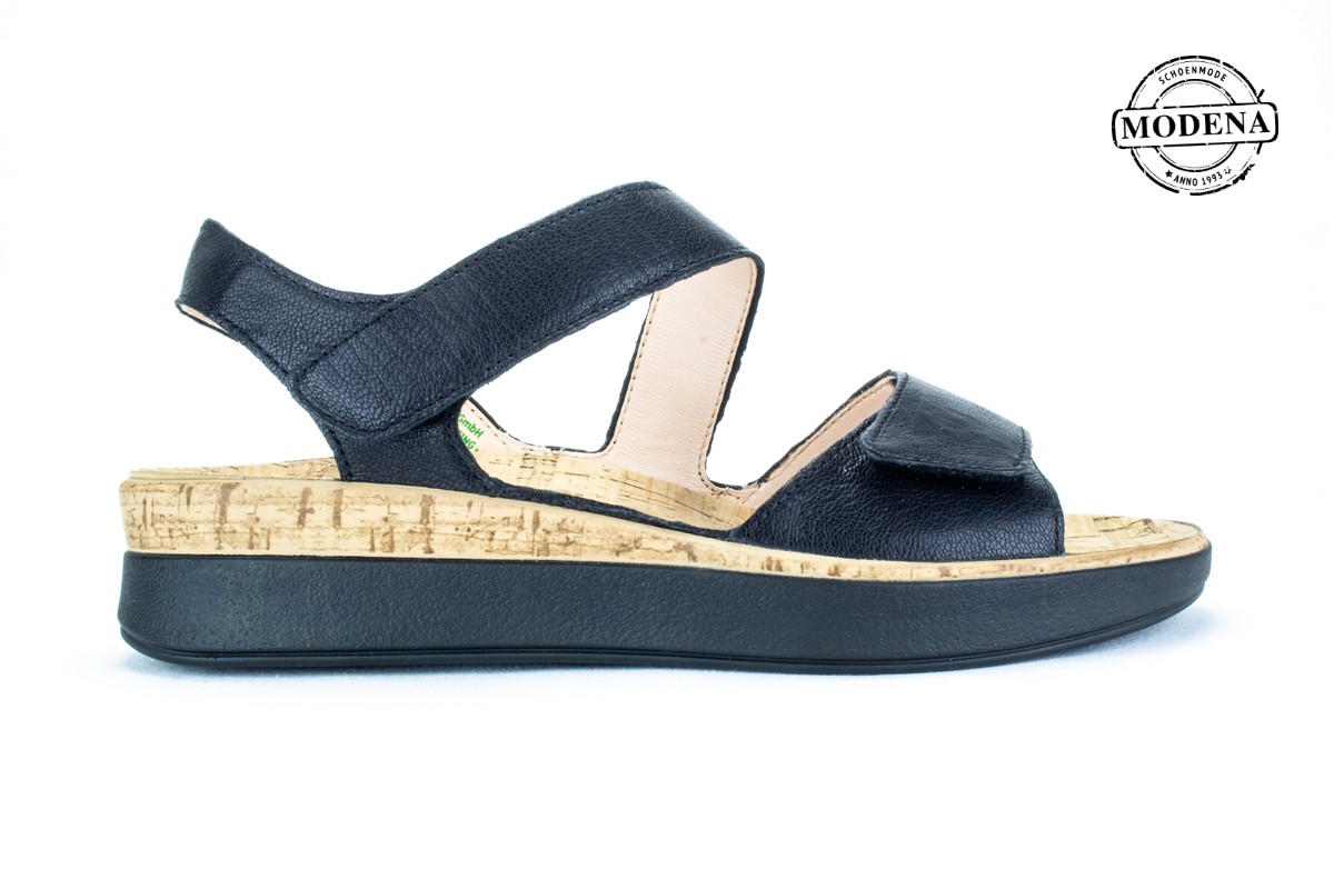 | Details | Een sandaal met verstelbare band voorop de voet en een schuine band over de wreef. Dit is een iets losser model op de hiel, maar wel eens wat eleganter dan we gewend zijn van steunzool sandalen. deze heeft een kurk binnenzool en "kurklook" boord. |