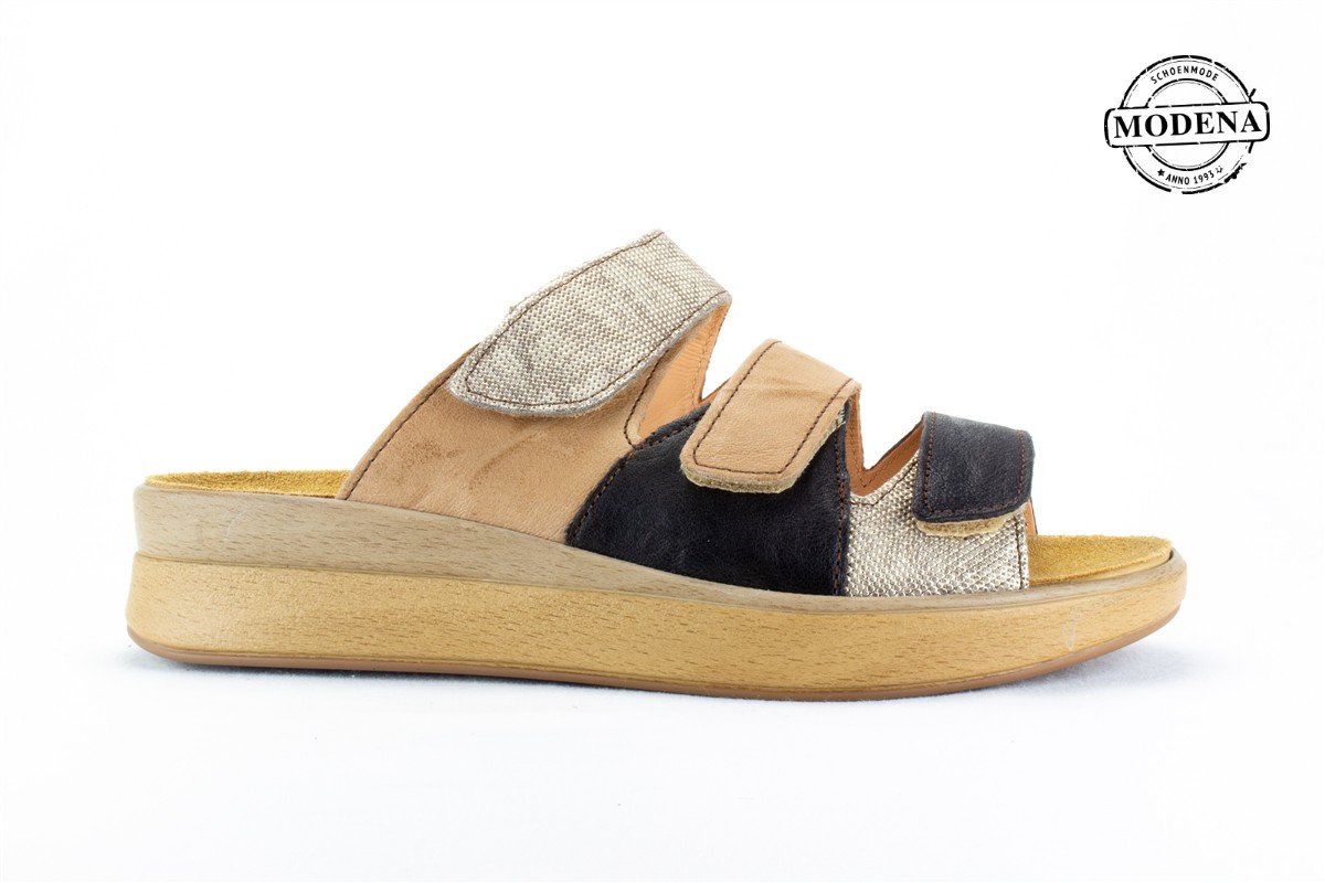 | Details | Een vrij stevige slipper, met 3 verstelbare banden over de wreef voor maximum steun. |
