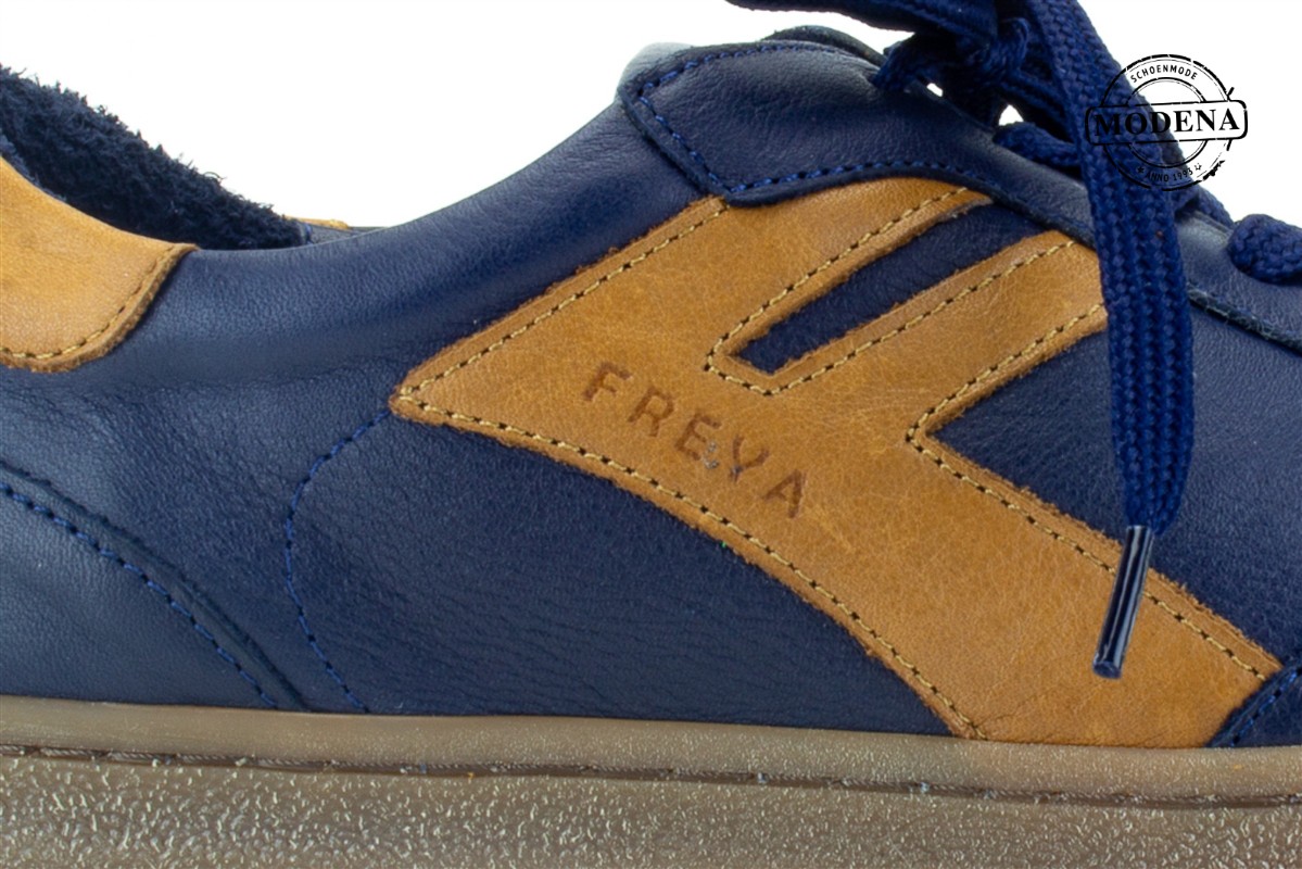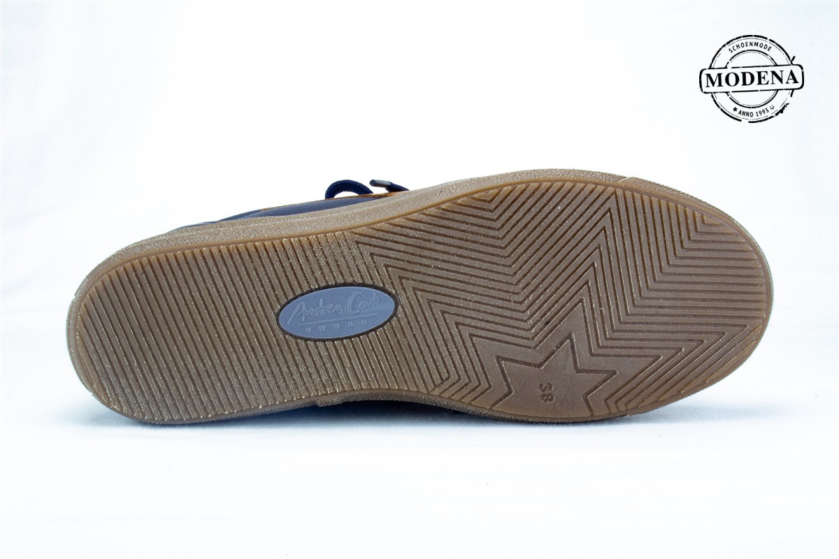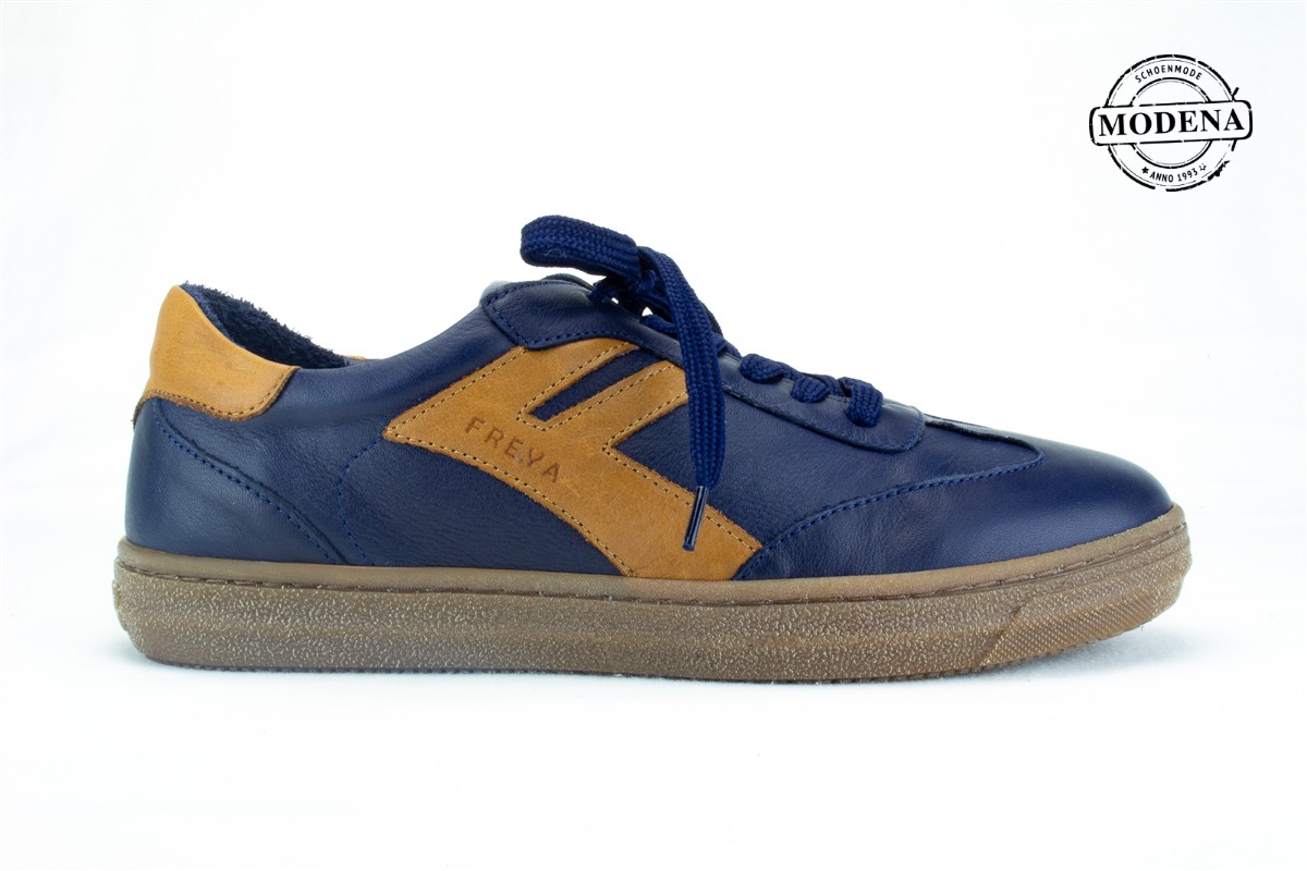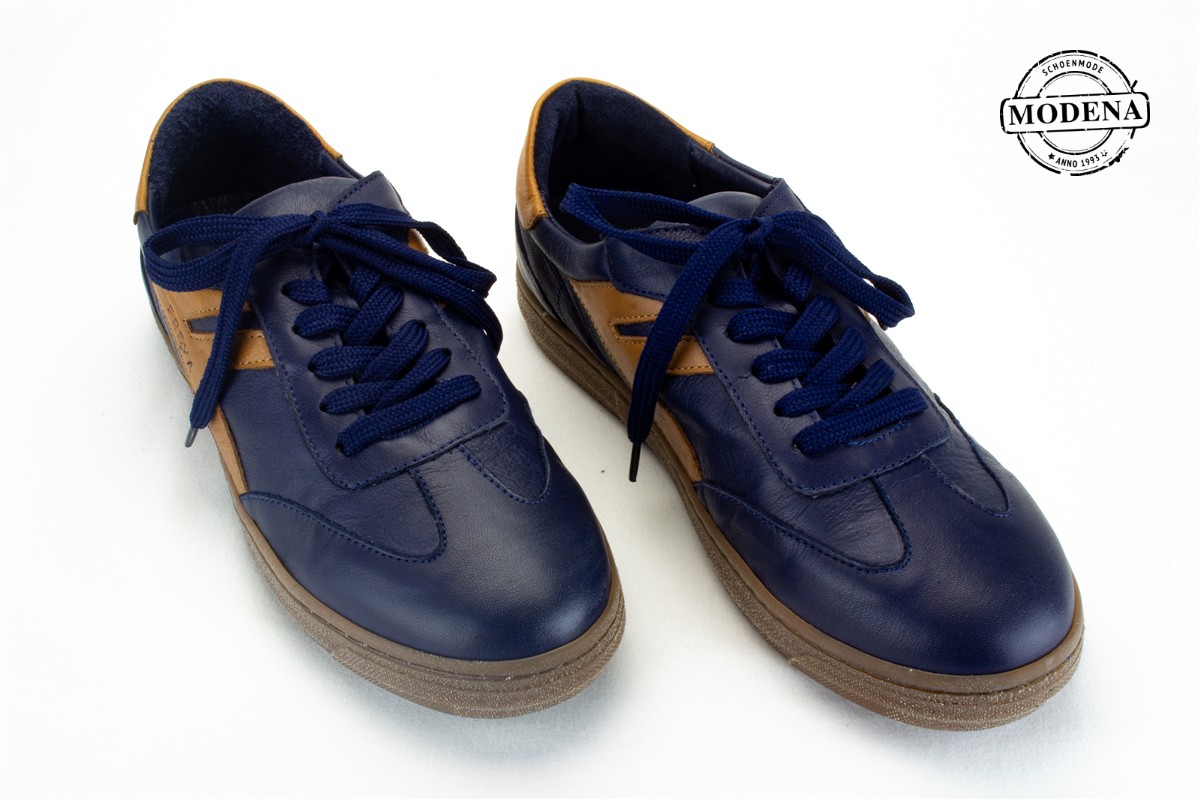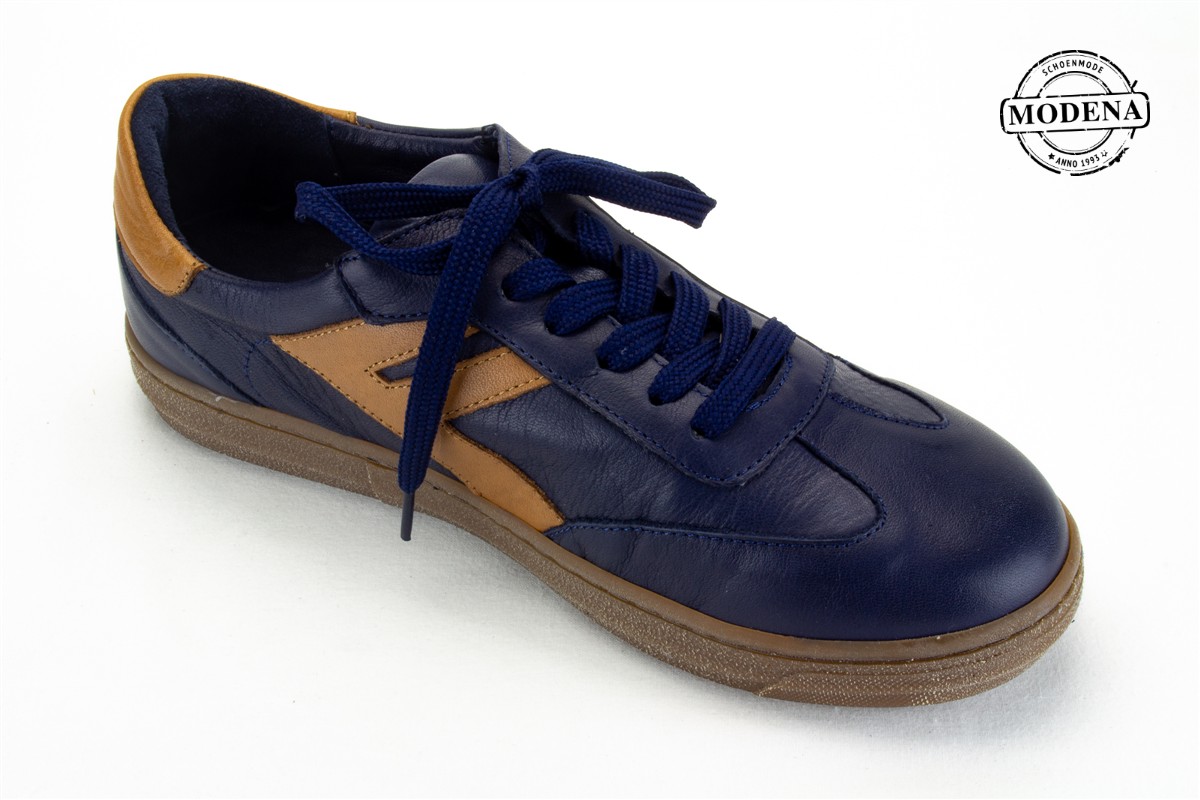 | Details | Een blauwe sneaker met camel veter en streep op de zijkant en hiel. Zeer zacht leder, iets stevigere zool dan dat we van dit merk gewoon zijn. |
