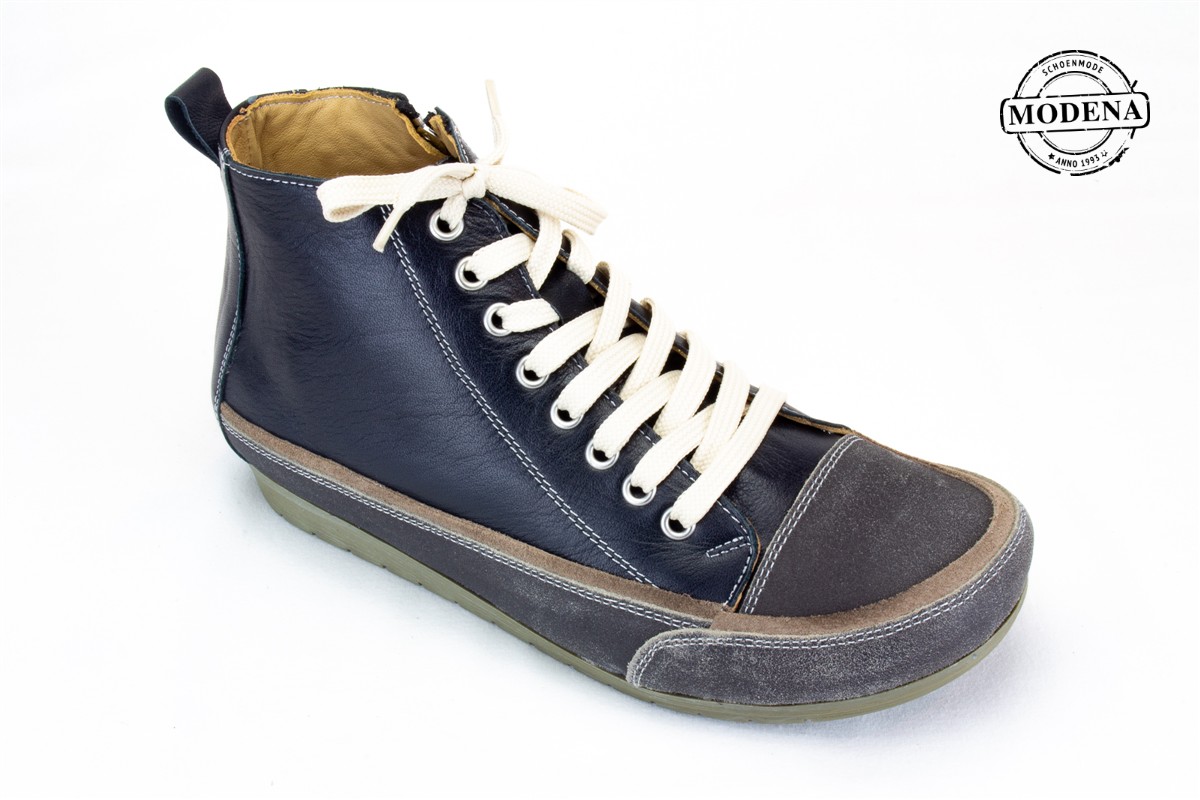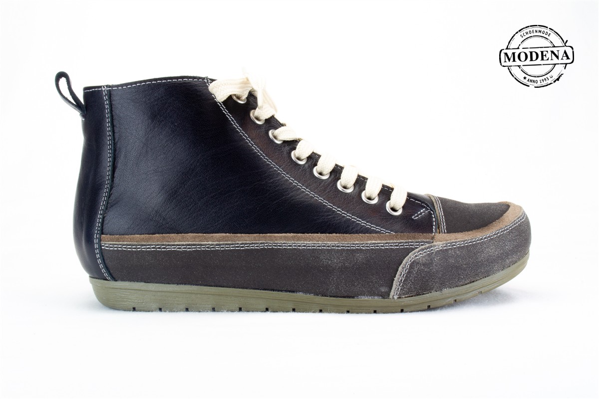 | Details | Een hoge basket met een brede, stoere boord rond de zool/zijkant. Ook de platte beige veter steekt leuk af. |