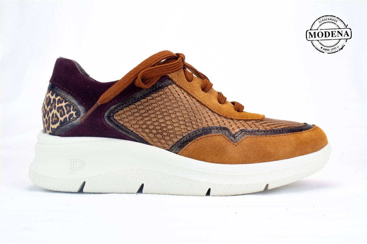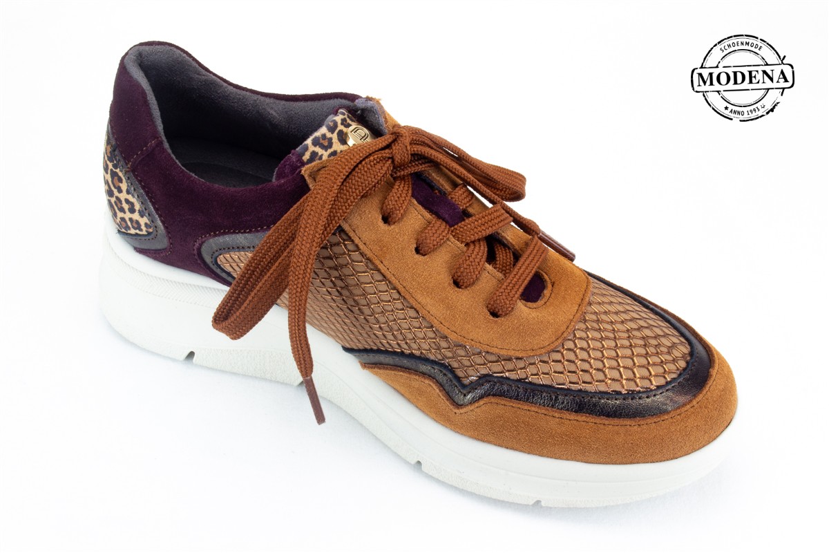 | Details | Een luchte en toch stevige sneaker, in een combinatie van cognac met bordo en brons en een kleine inzet van luipaard print. |
