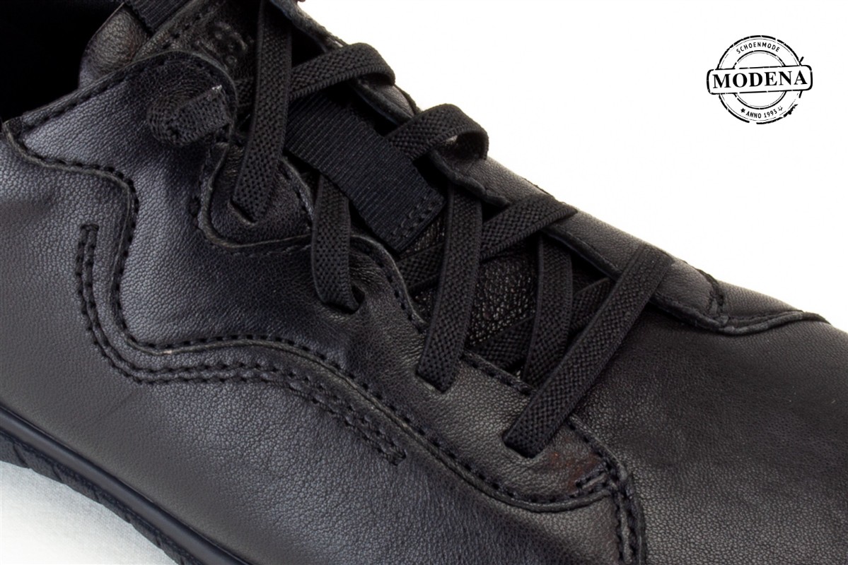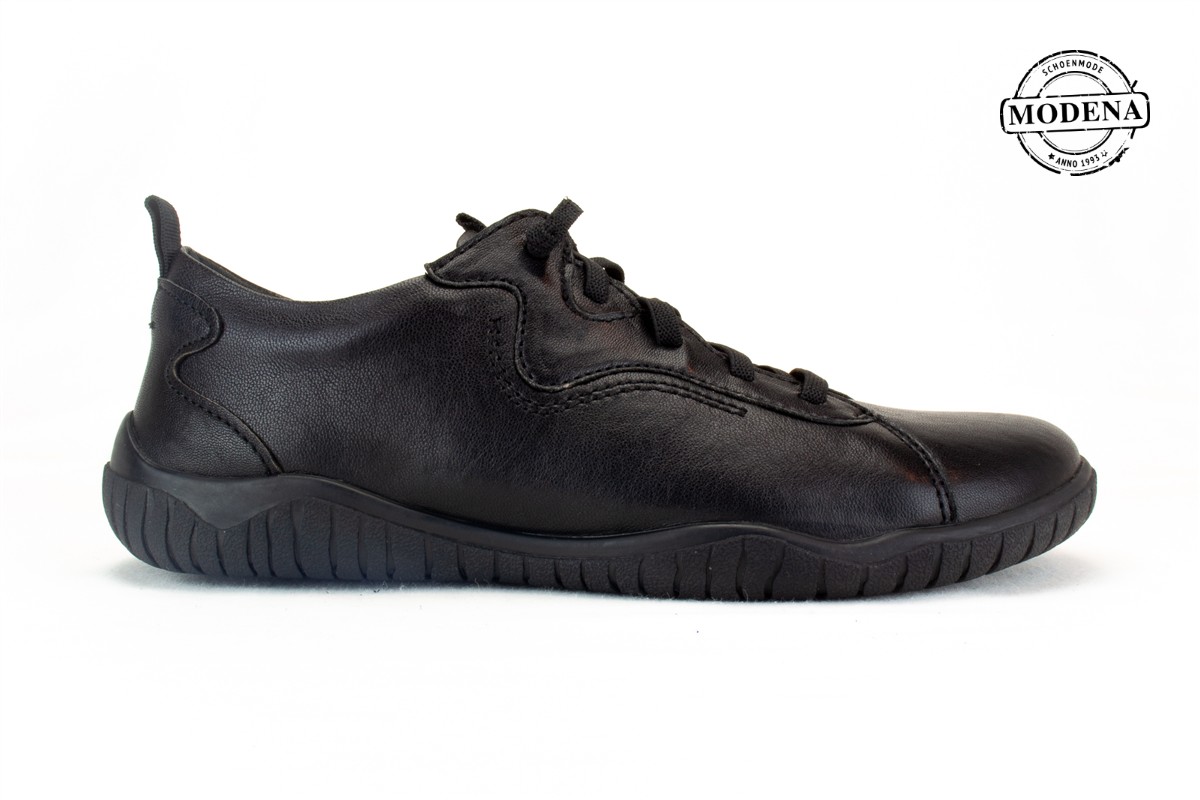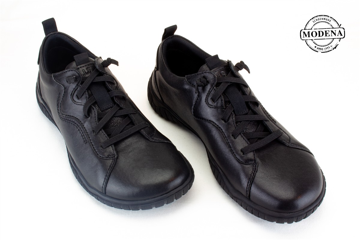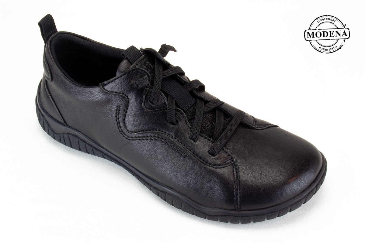 | Details | Een lage seer soepele schoen met een lekker brede voorvoet. Er zit een elastiek in als sluiting, maar er is een veter bijgeleverd voor diegenen die de elastiek niet vast genoeg vinden. |
