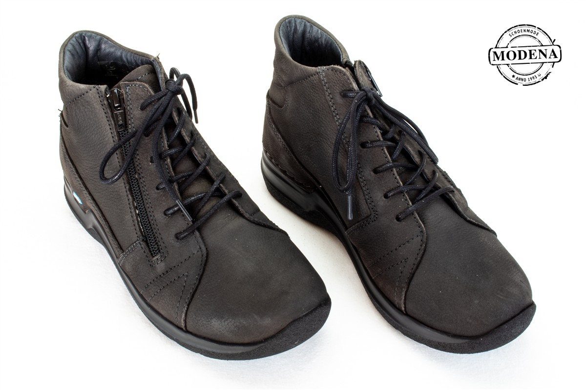 | Details | Een veterschoen tot op de enkel met een rits naast de veter( (dat gaat verder open dan een rits aan de zijkant van de voet). Met een mooi brede voorvoet en een goede stevige zool. |