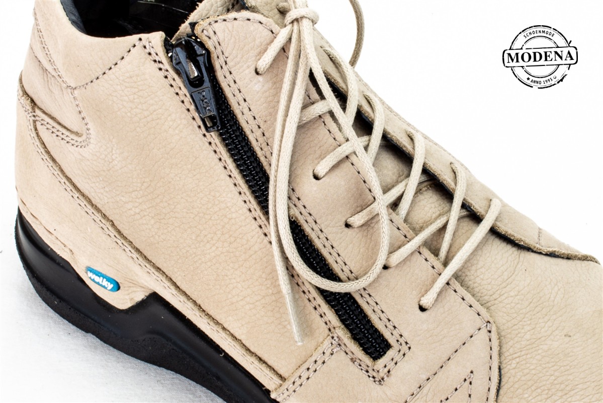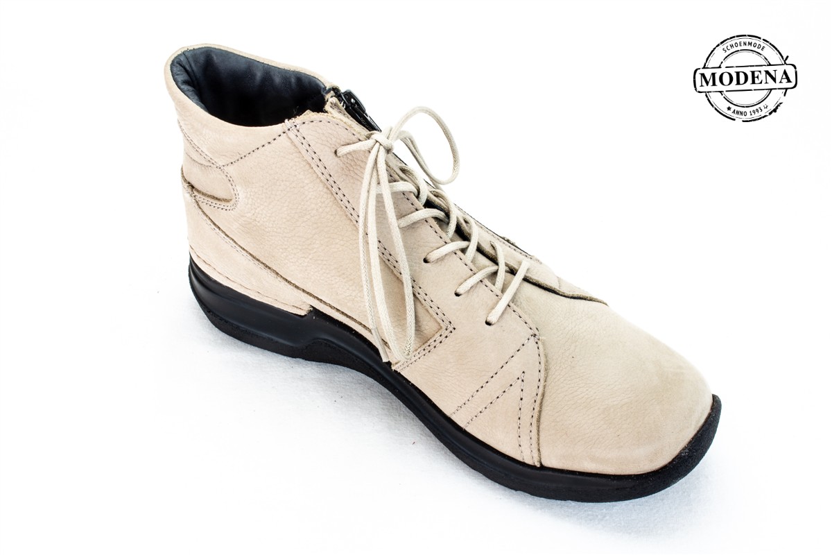 | Details | Een veterschoen tot op de enkel met een rits naast de veter( (dat gaat verder open dan een rits aan de zijkant van de voet). Met een mooi brede voorvoet en een goede stevige zool. |