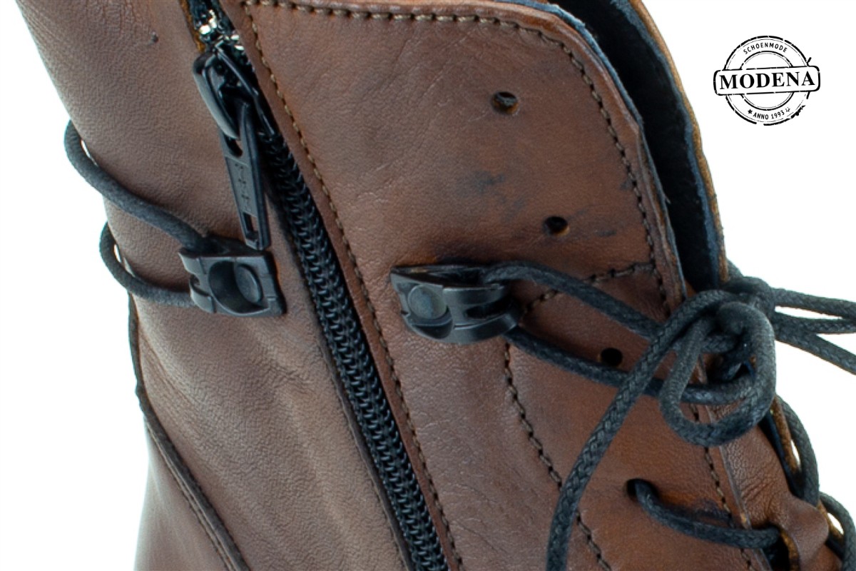 | Details | Een veterlaarsje waarbij de veter rond het been gewikkeld is op een manier zodat de rits open kan zonder de veter te moeten losmaken. Omdat de veter niet volledig tot boven dicht is staat deze super tof aan het been zo "snijdt hij niet af" qua zicht. |