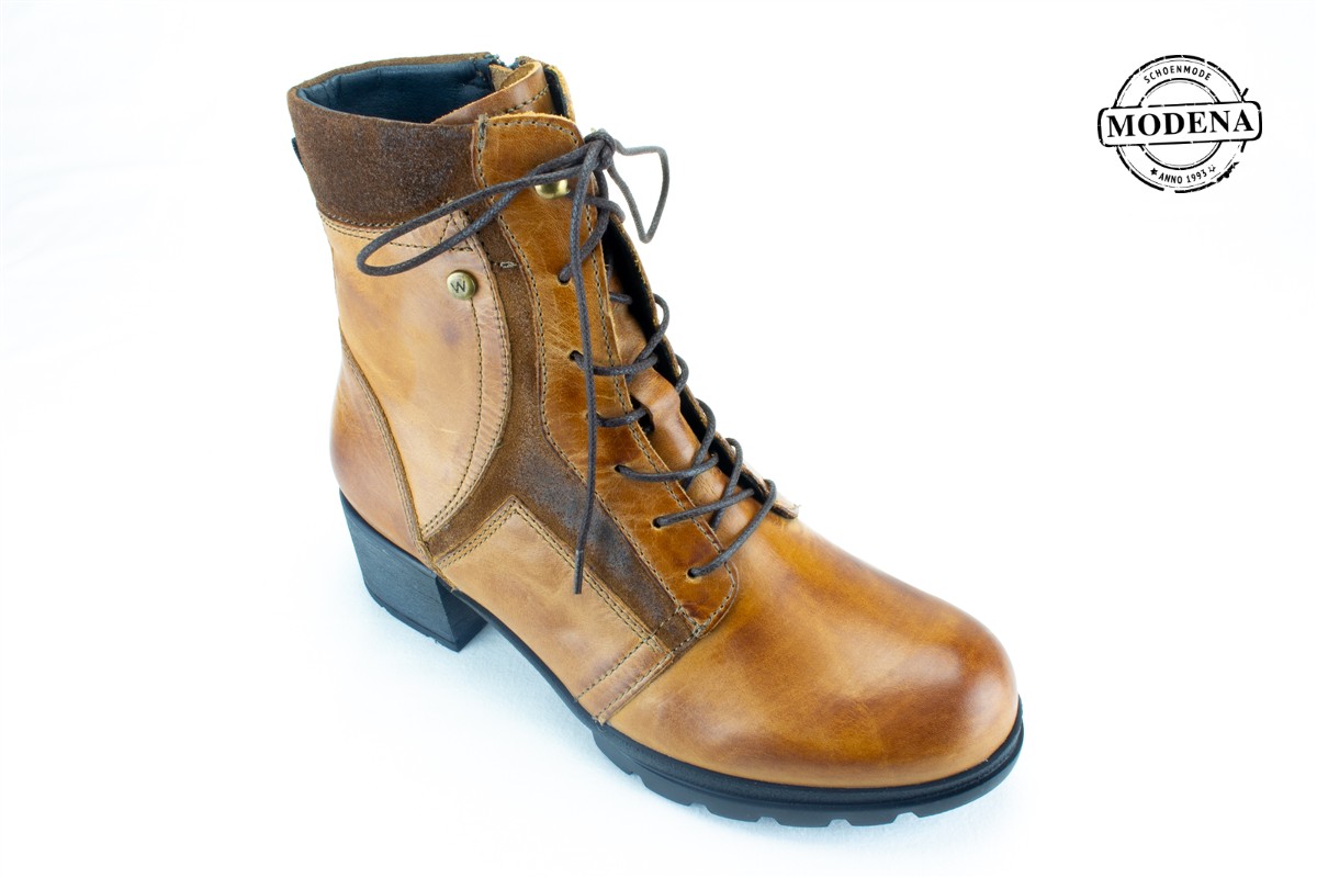 | Details | Een veterlaarsje met een beetje hak, een goed stevig laarsje. Verstelbaar in breedte door de veter, daarna te sluiten met de rits. |