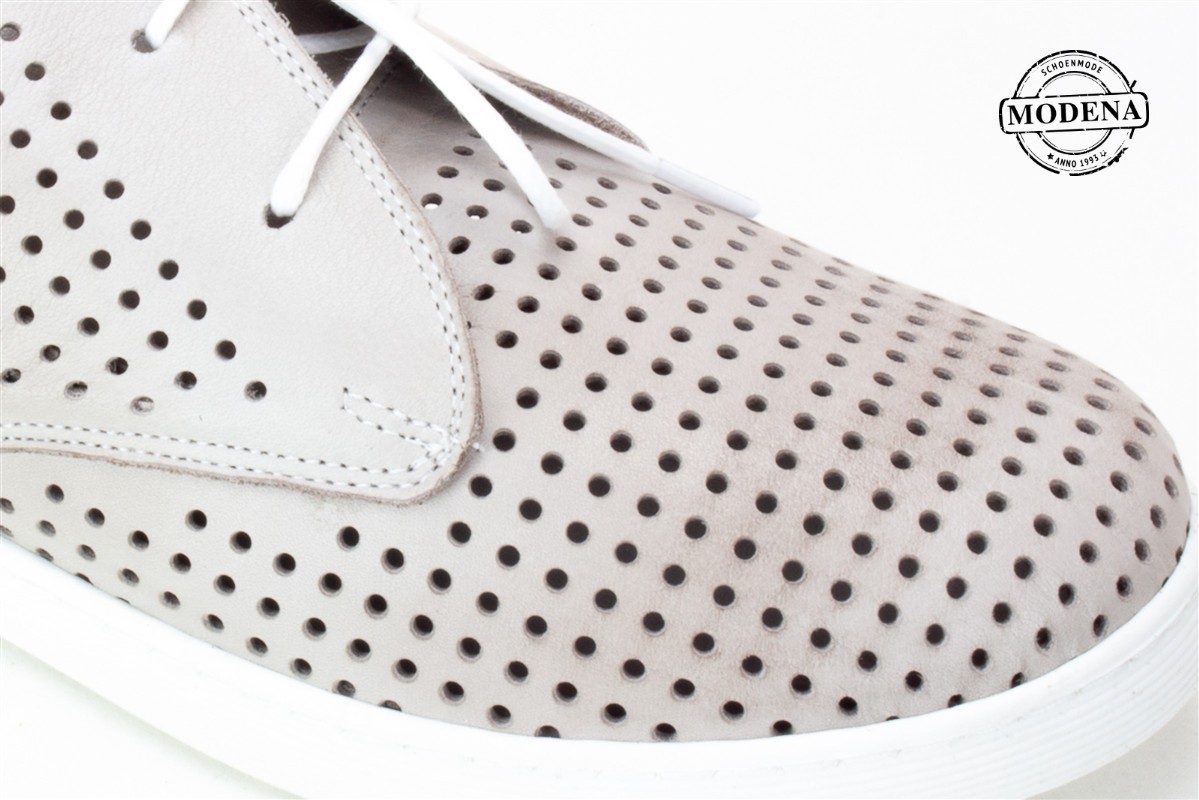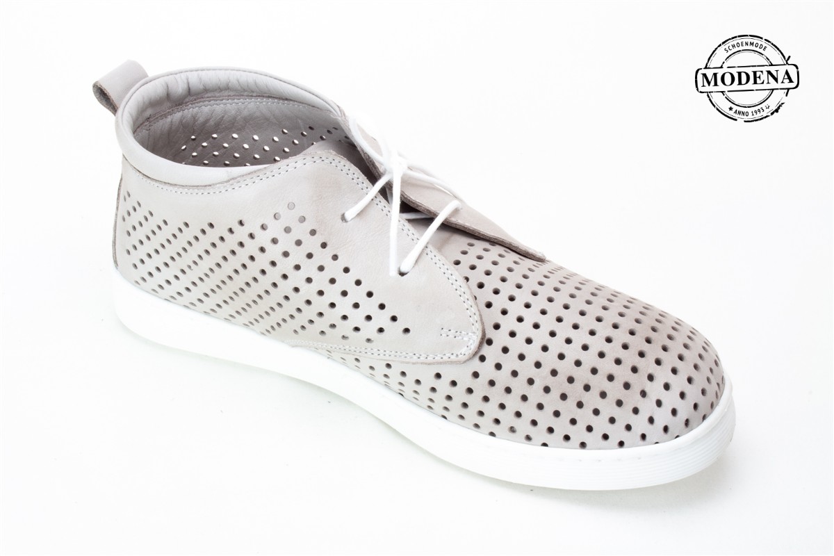 | Details | Een halfhoge basket tot net op de enkels volledig geperforeerd. Opletten dus welke sokken je hierin draagt. Volledig in het hele zachte leder, ook de hiel (dus niet zoveel steun). |