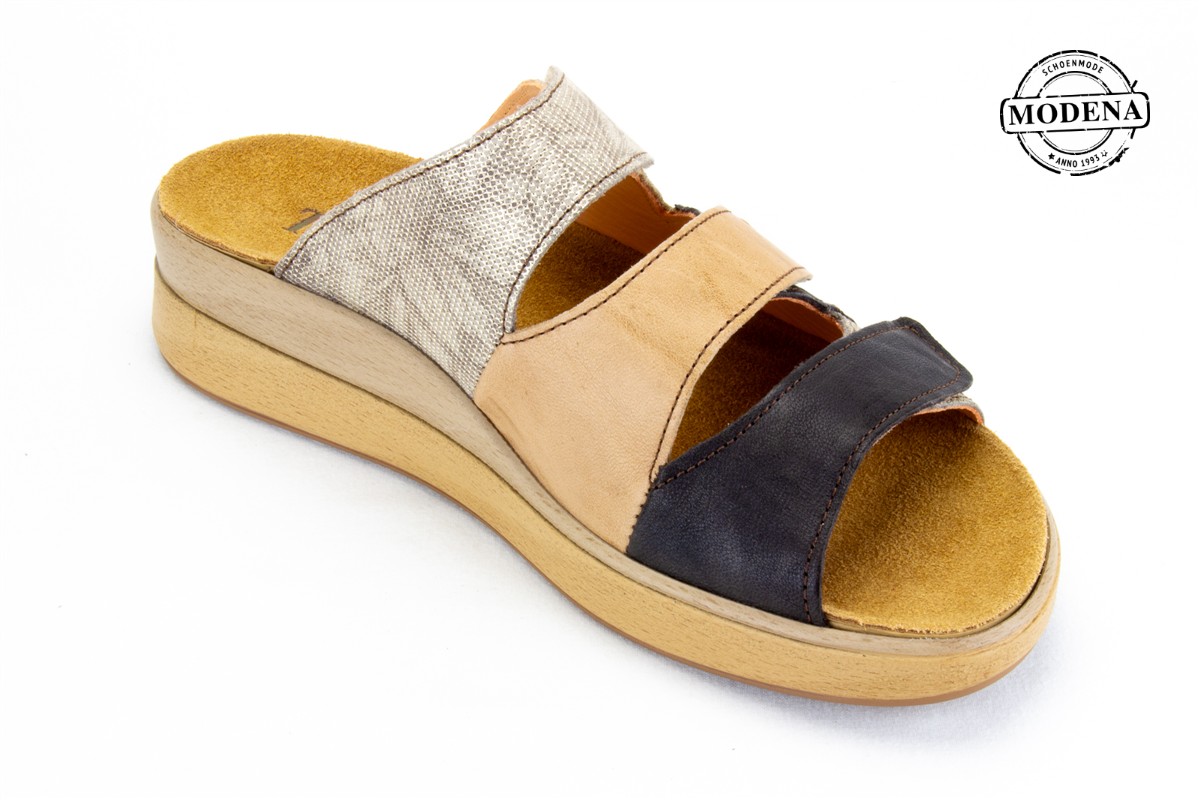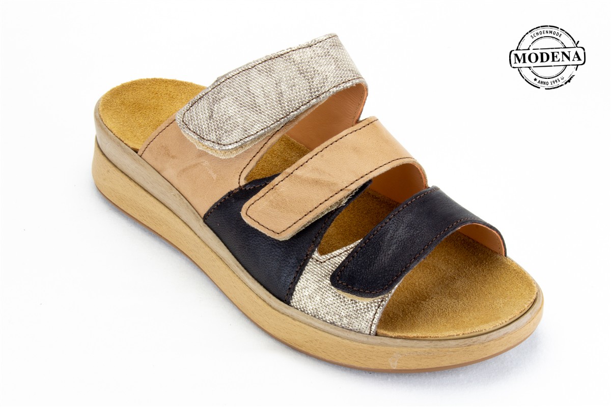 | Details | Een vrij stevige slipper, met 3 verstelbare banden over de wreef voor maximum steun. |