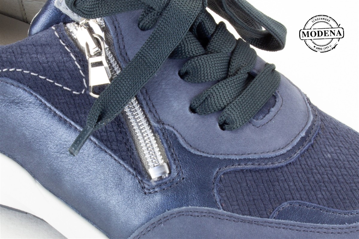 | Details | Een extra brede sneaker met veter en een rits. Met op de wreef een inzet in nubuck met een printje ingedrukt. |