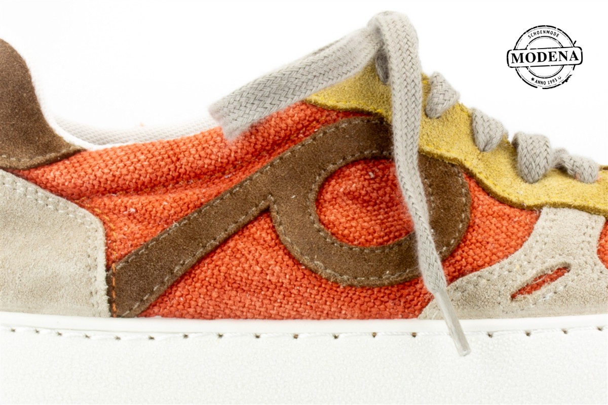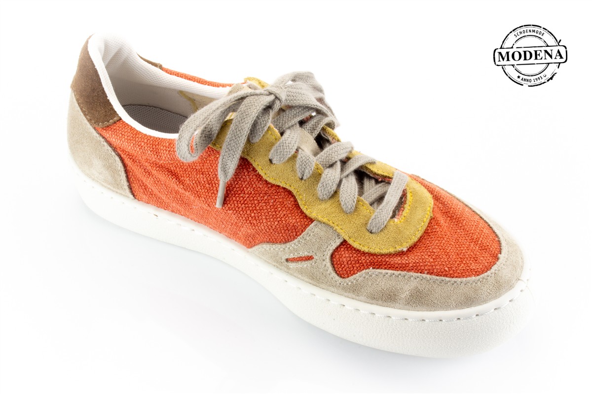 | Details | Een stoffen basket met nubuck afgewerkt, een zeer mooi linnenachtig stofje dat een beetje gekreukt is, dat wil dus ook zeggen dat de ene neus al eens net iets "kreukeliger" kan zijn dan de andere... |