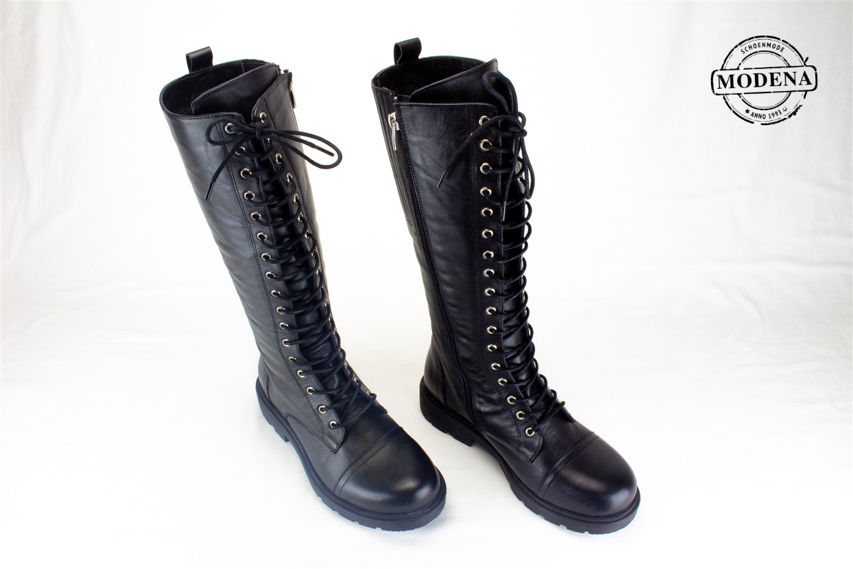 | Details | Een lange veterlaars met rits. Verstelbaar door de veter en dus redelijk breed, ook heeft hij nog een stukje elastiek inzet. |