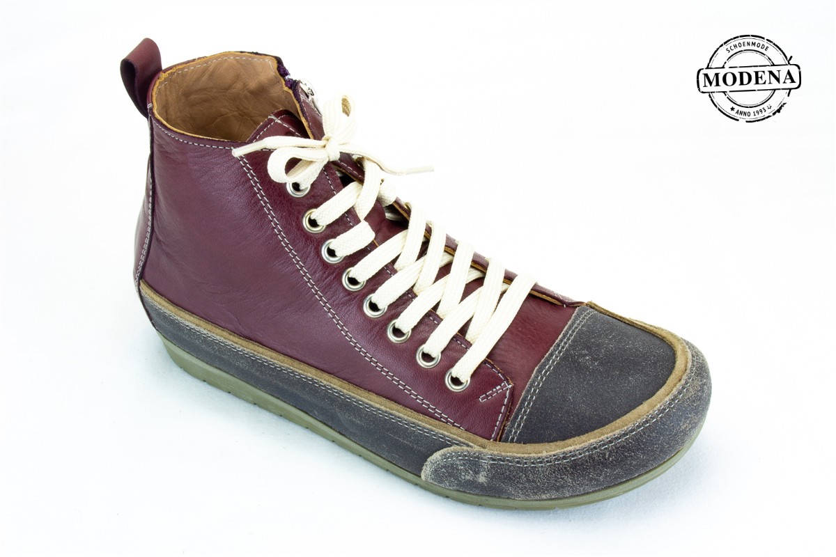 | Details | Een hoge basket met een brede, stoere boord rond de zool/zijkant. Ook de platte beige veter steekt leuk af. |