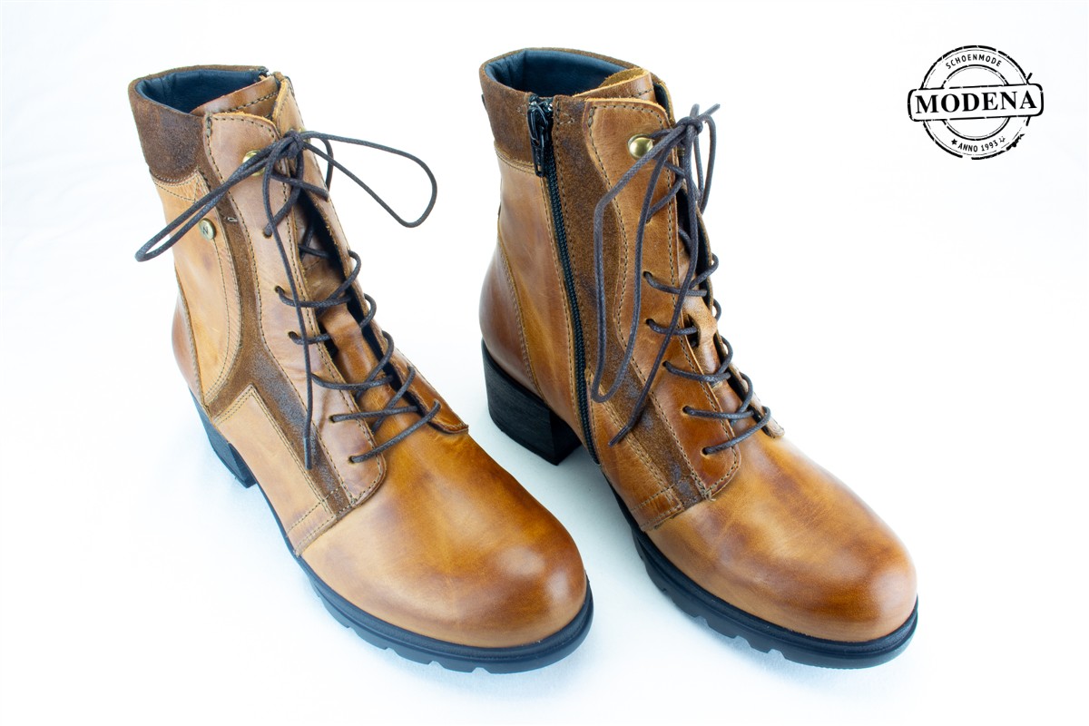 | Details | Een veterlaarsje met een beetje hak, een goed stevig laarsje. Verstelbaar in breedte door de veter, daarna te sluiten met de rits. |